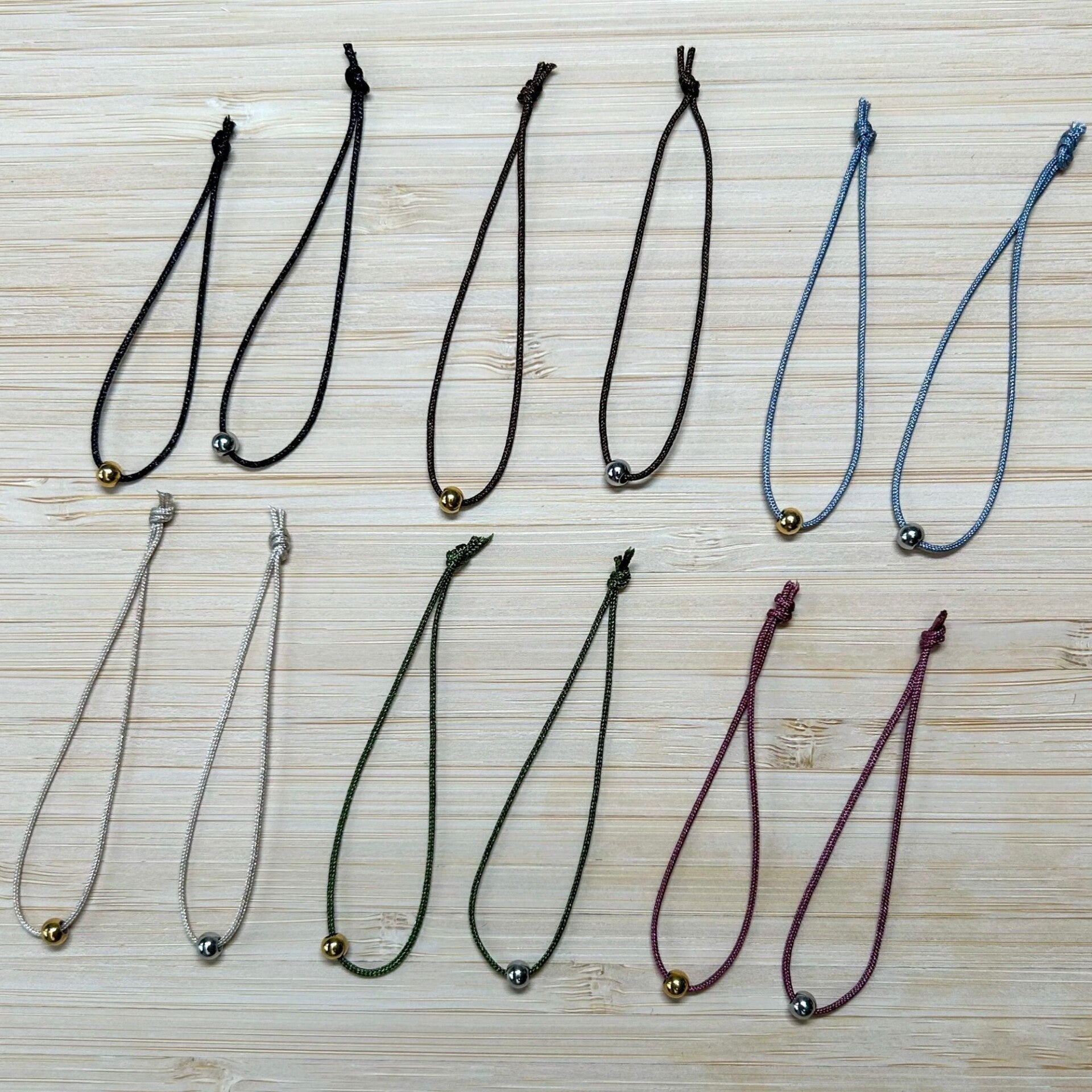 Cordon d'attache en coton avec fermeture macramé ajustable et perles en acier inoxydable.
