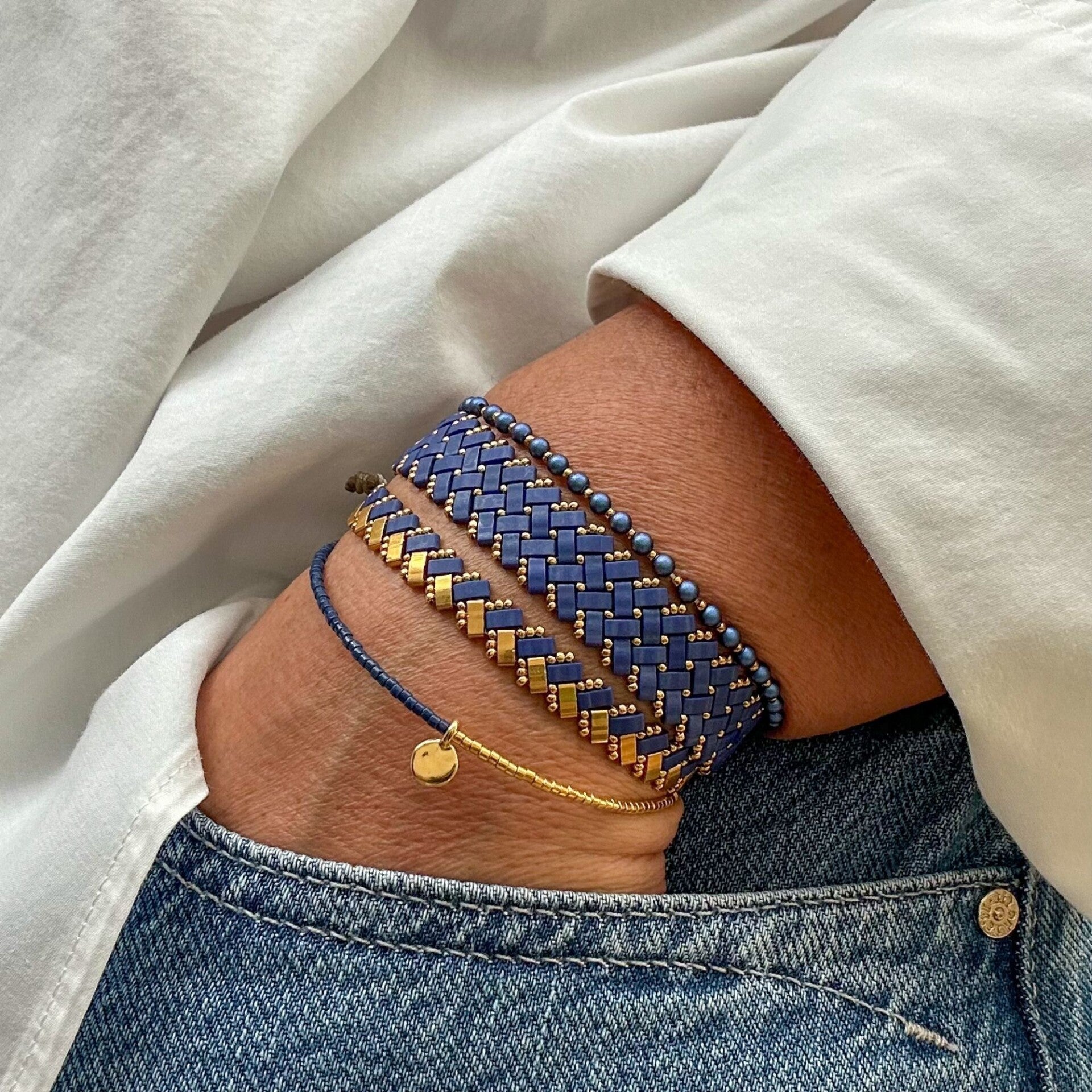Bracelet deux chevrons bleu mat.